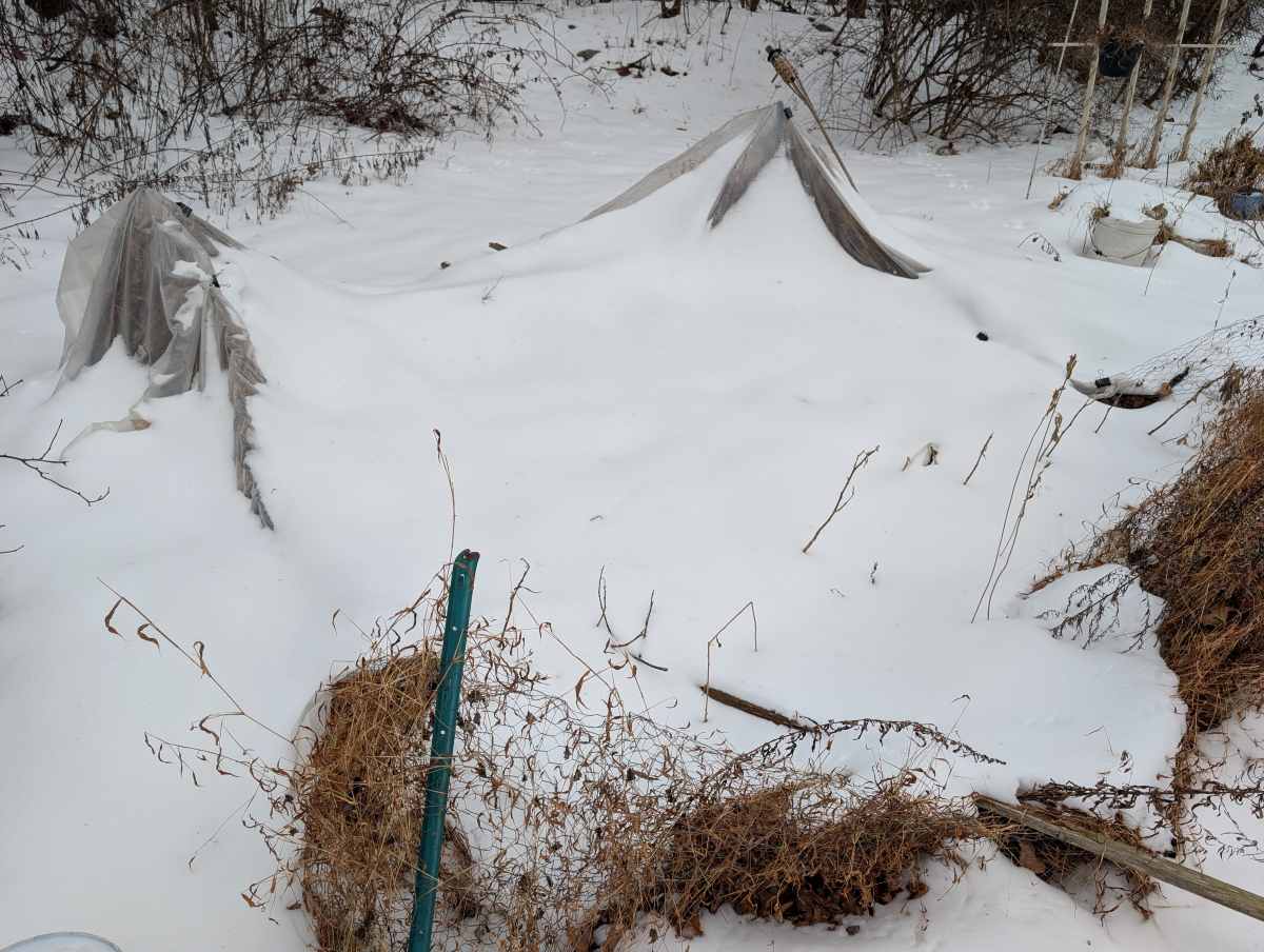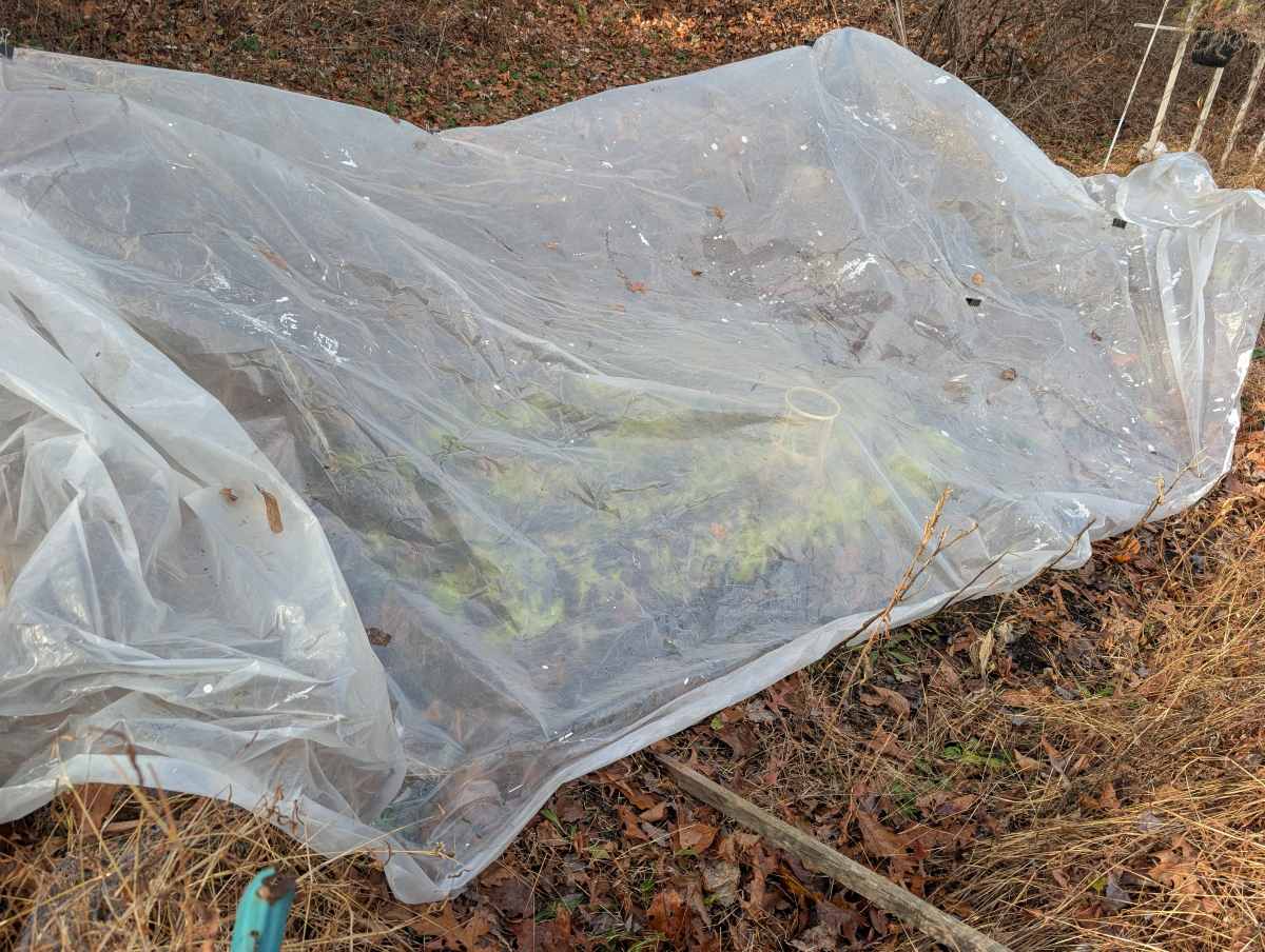 Despite the harsh winter conditions, we have been pleasantly surprised to find that we have been able to successfully harvest some fresh Simpson Black-seeded Lettuce from our garden. To protect the plants from the of snow and ice, we used a simple yet effective strategy: we covered the garden with clear drop cloths. Our primary goals with this method were twofold: to act as a protective barrier against the elements and to attempt to capture and retain any available warmth, even during the coldest days.