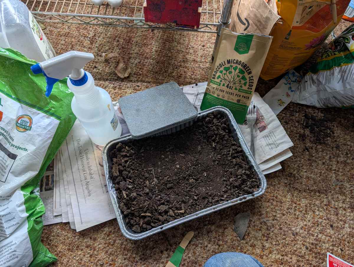 Begin by carefully filling the seed-starting pan with approximately one to two inches of high-quality, well-draining potting soil, ensuring it’s evenly distributed across the bottom. Next, take a small, flat tile, such as a discarded square ceramic tile, and gently use it to create a shallow impression or indentation in the prepared soil. Within this prepared space, add a generous layer of the seeds you intend to cultivate. Following this, thoroughly moisten the newly sown seeds by using a mister to apply a fine, even mist of water, ensuring that the soil is damp but not waterlogged. Finally, carefully place the tile back over the seeded area, ensuring it makes good contact with the soil to help retain moisture and protect the germinating seeds.