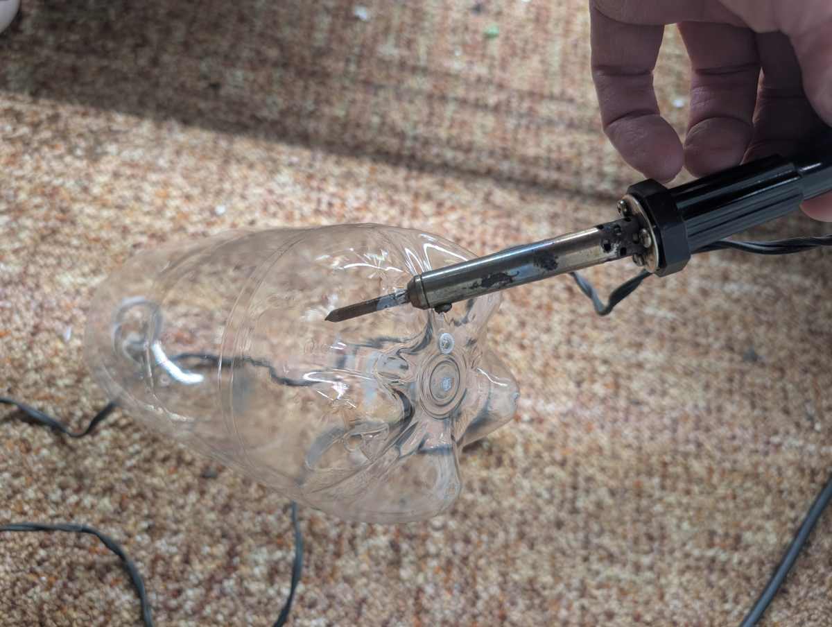 The preparation of the containers involves several key steps. Firstly, drainage is ensured by creating holes in the bottom of each container. Simultaneously, holes are also punched in the top section of the containers; these strategically placed perforations are crucial for facilitating optimal airflow within the growing environment. A hot soldering iron offers a practical and efficient method for creating these holes with precision and speed. After the drainage and ventilation holes are complete, the next step is to prepare the containers for splitting. To do this, a hole is then made in the center of each bottle. This central perforation serves as the starting point for carefully cutting the bottle precisely in half. When cutting, it is important to leave approximately an inch of the bottle intact; this uncut portion will act as a sturdy and functional hinge, allowing for easy access to the plants within the containers.