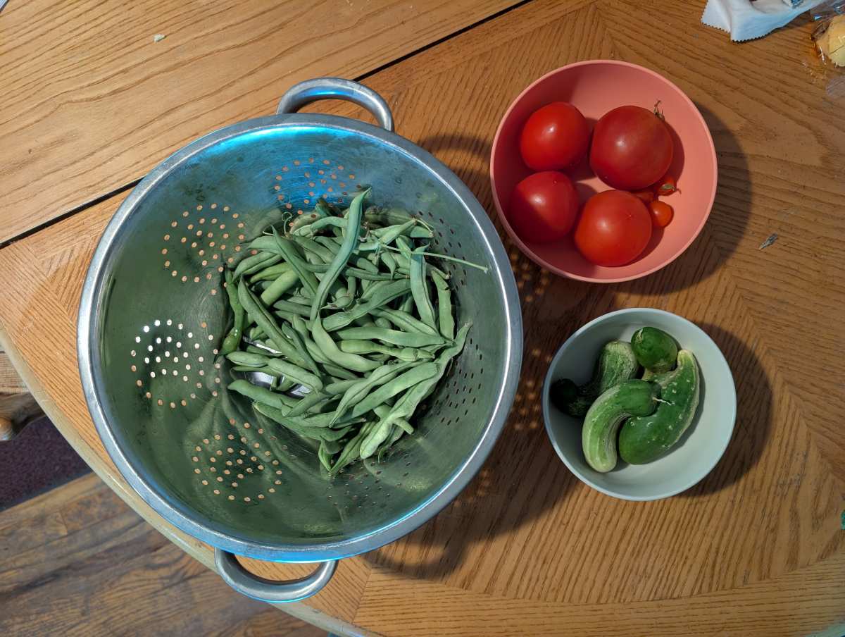 Continuing the harvest with pole beans, tomatoes and pickling cucumbers