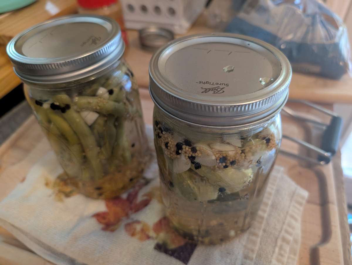 As we have been harvesting the bounty from our garden, we’ve also been preserving our fresh produce to ensure we can enjoy these flavors throughout the extended winter months. Our preservation efforts have already yielded delicious results, as we’ve successfully canned ripe tomatoes and created tangy, flavorful pickled cucumbers. Currently, we are embarking on another preservation project: pickling green garden beans. The process begins with the creation of a flavorful brine, which we then use to carefully fill our canning jars. Finally, we ensure the safety and longevity of our pickled garden beans by processing the sealed jars in a hot water bath.